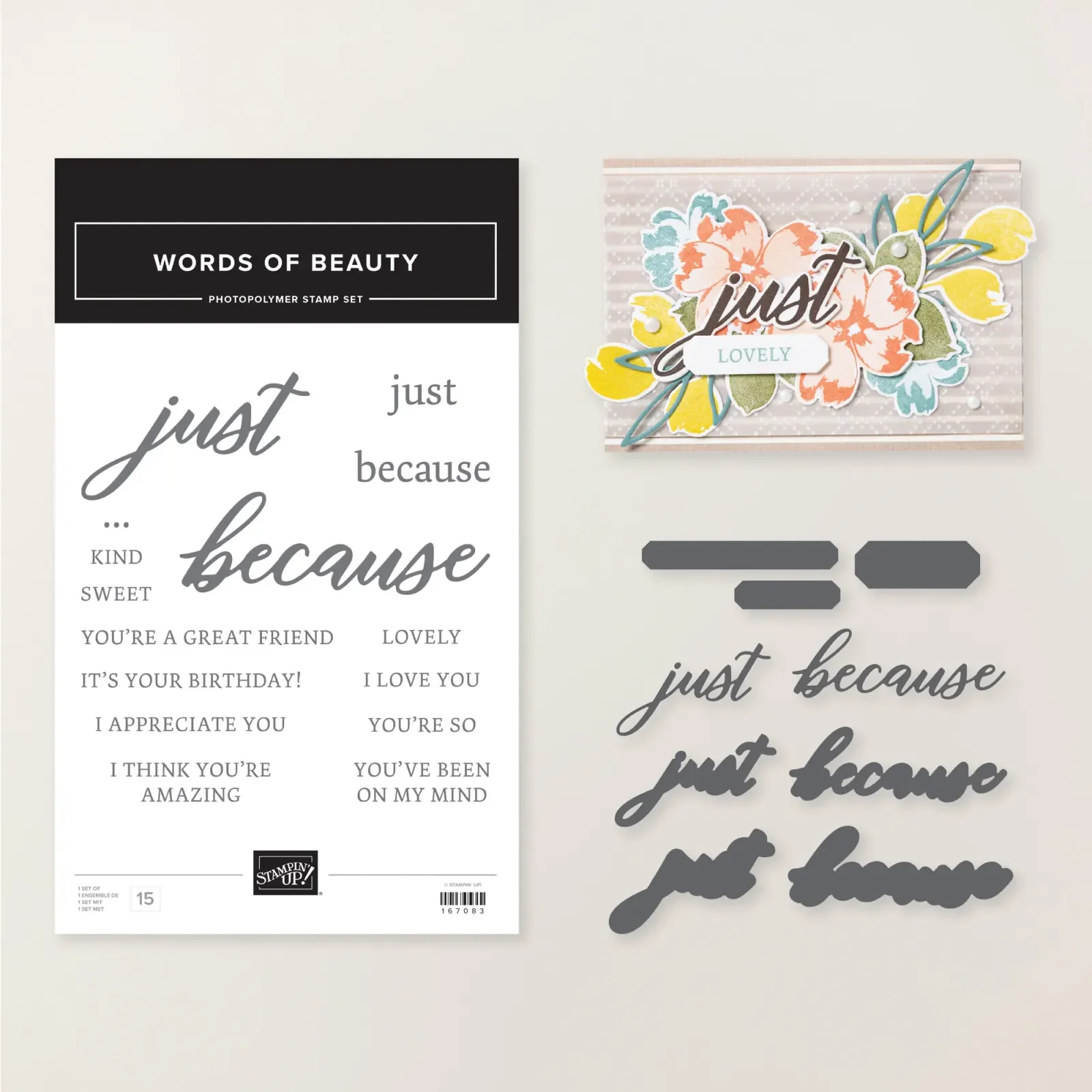 - Includes the Words of Beauty Stamp Set and Words of Beauty Dies