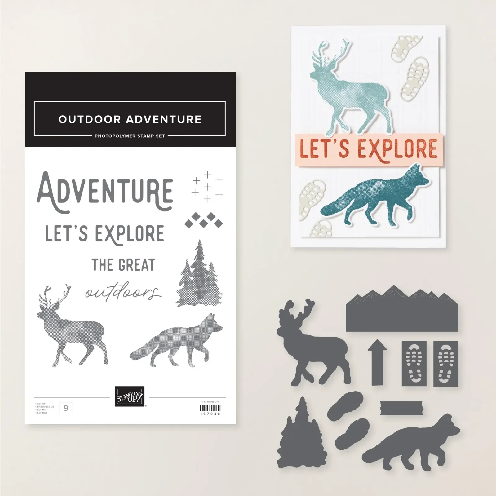 - Includes the Outdoor Adventure Stamp Set and Outdoor Adventure Dies