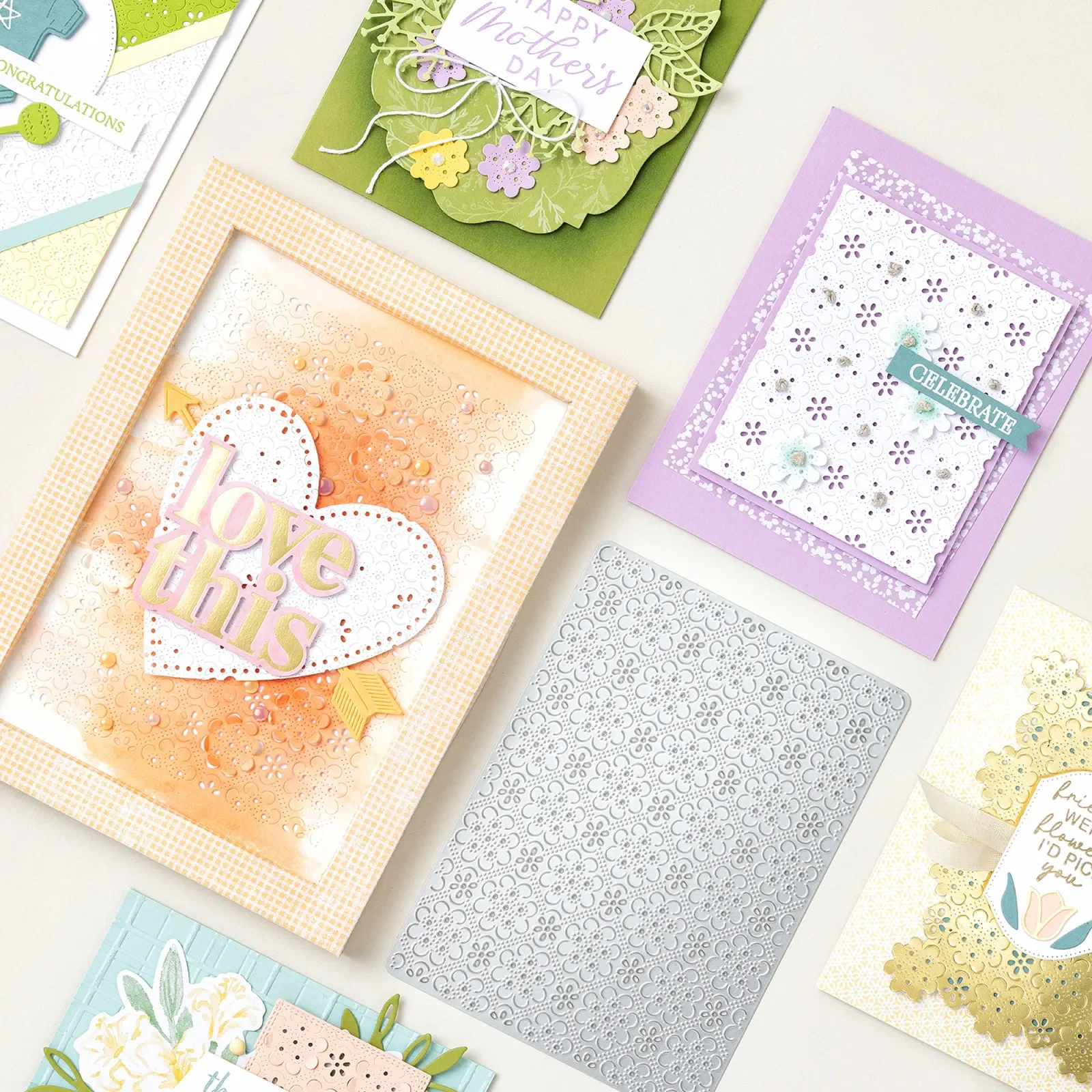 Give your card fronts and crafts a dainty touch with the Eyelet Blooms Die. Create delicate backgrounds with a hand-stitched look or layer pieces for a classic finish that works for any occasion. It’s eyelet magic for every card.